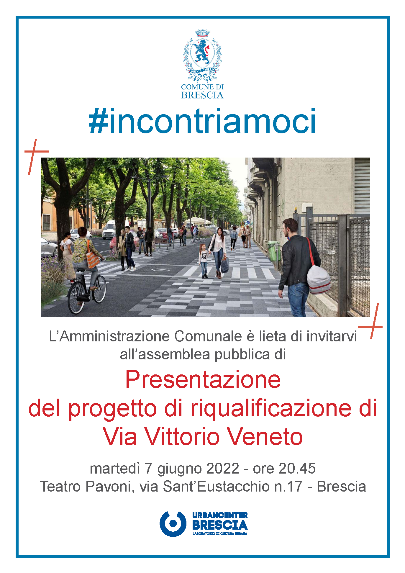 Martedì 7 giugno 2022, alle ore 20:45, presso il Teatro Pavoni, in via Sant'Eustacchio,17 a Brescia, si è svolta la venticinquesima serata del ciclo di assemblee #incontriamoci, organizzata da Urban Center Brescia in accordo con il Consiglio di Quartiere Sant'Eustacchio.
